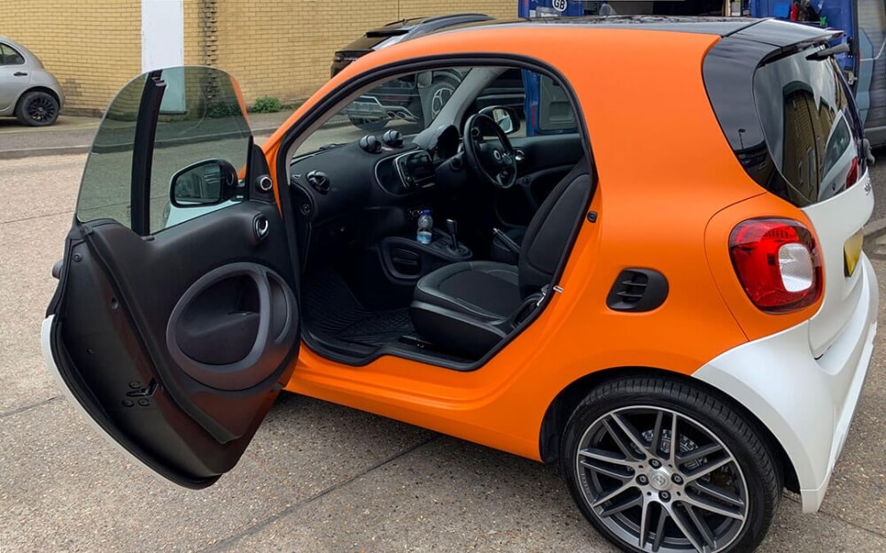 Choose from our 300+ vehicle wrap vinyl colours to create a one off Smart perfect for you. You can wrap all the panels or only certain parts or give it a custom finish such as satin, chrome or brushed metal.